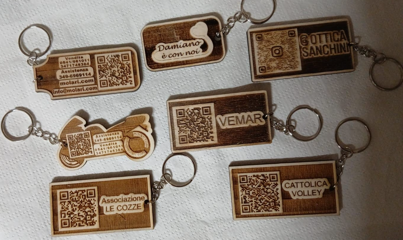 "Ha dato vita a portachiavi in legno e piastrine in metallo con logo dell'attività e QrCode davvero originali e graziosi.